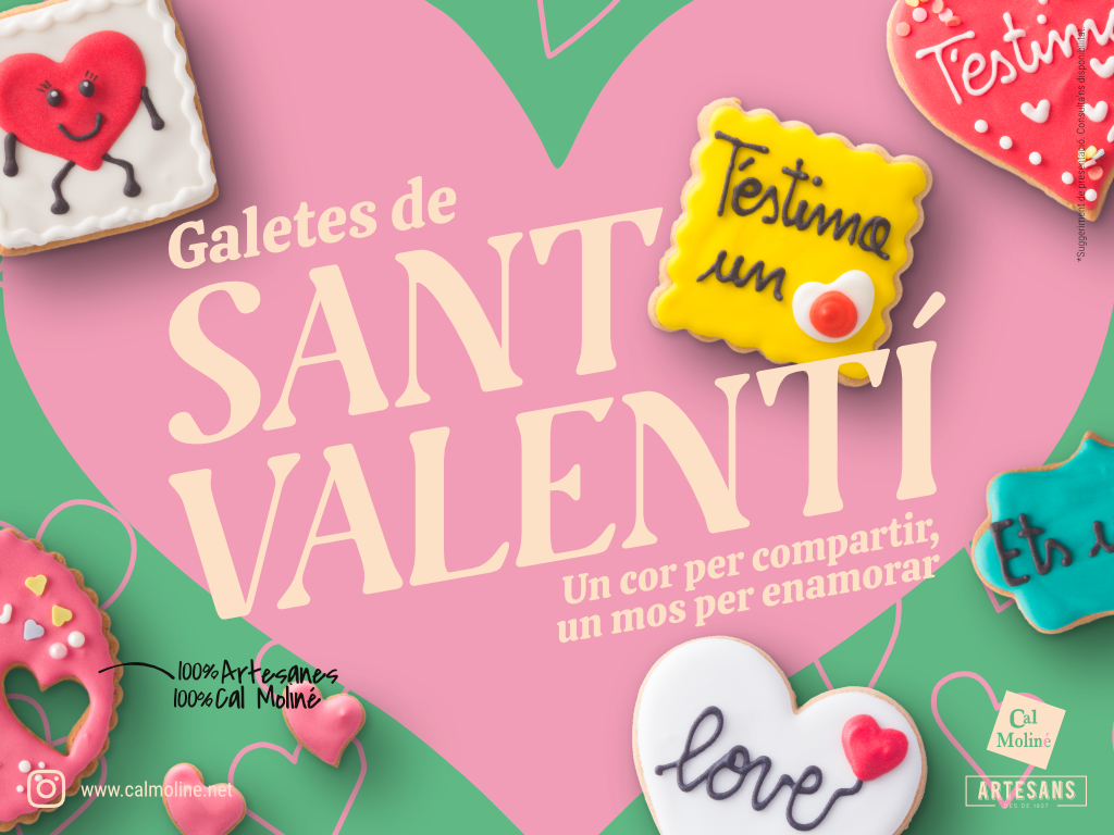 I per acabar d’arrodonir la col·lecció, no hi poden faltar les nostres galetes artesanes. Les trobaràs en forma de cor o amb missatges d’amor amb un toc d’humor, una manera deliciosa i personal de dir allò que a vegades costa expressar amb paraules. Aquest any, deixa que la dolçor faci la feina per tu.