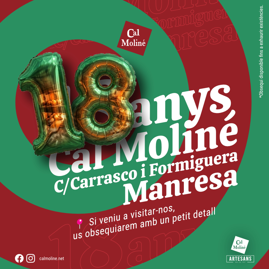 El dilluns 16 de març celebrem 18 anys del nostre forn de pa i cafeteria al Carrer Carrasco i Formiguera de Manresa, un espai que ha crescut al ritme del barri i del pas constant dels viatgers que entren i surten del Baixador dels Ferrocarrils. Durant tots aquests anys hem compartit esmorzars amb qui comença la jornada, hem donat la benvinguda a qui arriba amb el tren i hem estat un punt de trobada per als veïns que ens visiteu dia rere dia. Aquest moviment tan viu i divers és el que ha donat personalitat a la botiga i ens ha ajudat a créixer.
